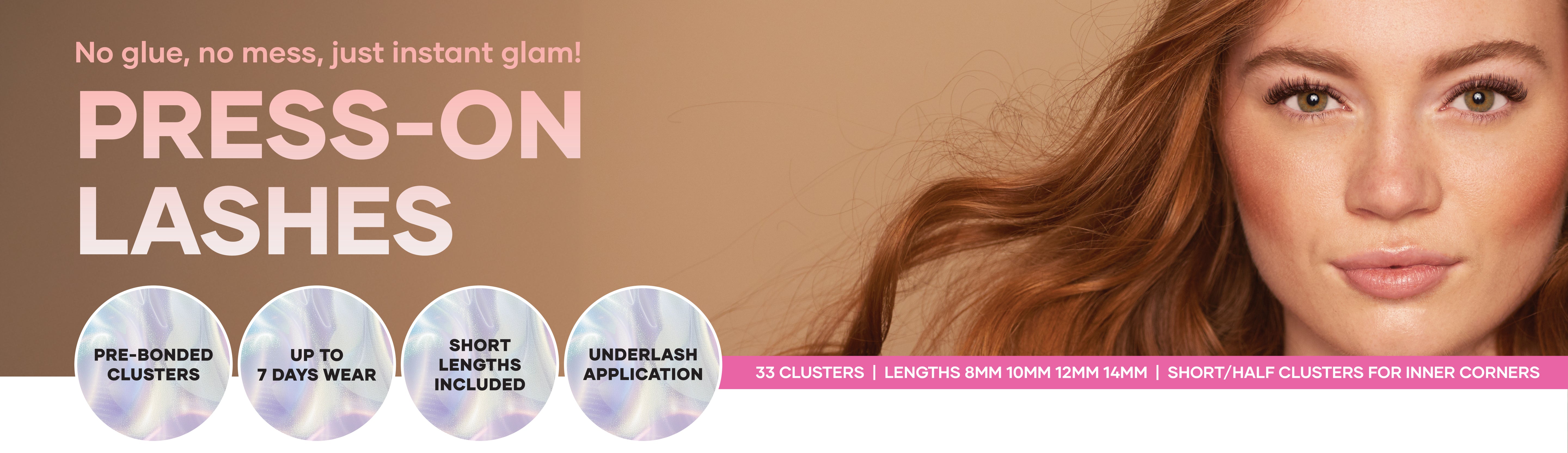 These lashes have a pre-glued adhesive band that sticks to your natural lashes. You apply them with the KYRO Beauty Lash Applicator. They stick securely without the need for any additional lash glue.